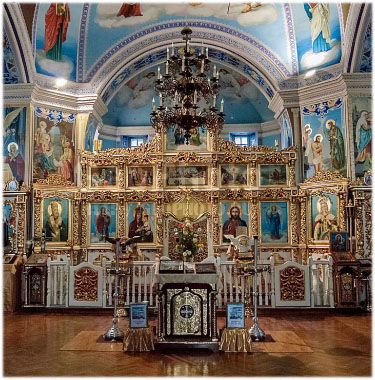 Поражает не только внешний вид здания, но и внутреннее убранство храма. Росписи покрывают абсолютно все стены. Многие святые изображены в полный рост. «Хочется молиться или хотя бы просить, как живых. На стенах будто оживают батюшка Серафим Саровский, Пантелеймон целитель, Святитель Николай, сюжеты из Евангелия» - такими впечатлениями от посещения храма делятся паломники. Внутри церковь просторная (рассчитана на 300 прихожан), светлая благодаря вертикальным окнам и пирамидальной конструкции светового барабана.
