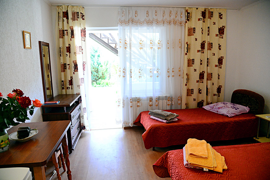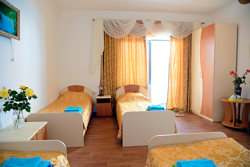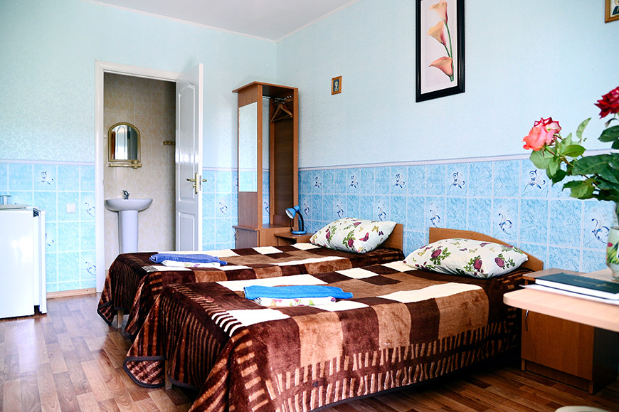 Размещение в православном пансионате в Новофедоровке Сакского района «ПАЛОМНИК» в 2-х и 3-х местных номерах со всеми удобствами в 8-ми минутах ходьбы от широкого песочно-галечного оборудованного пляжа с удобным входом в море. Пляж – лучший в Крыму!